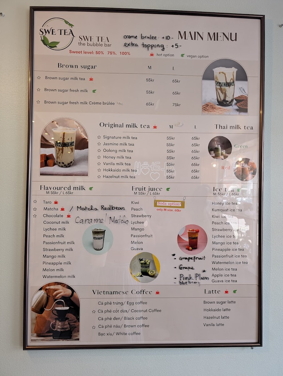 Swe Tea Menu